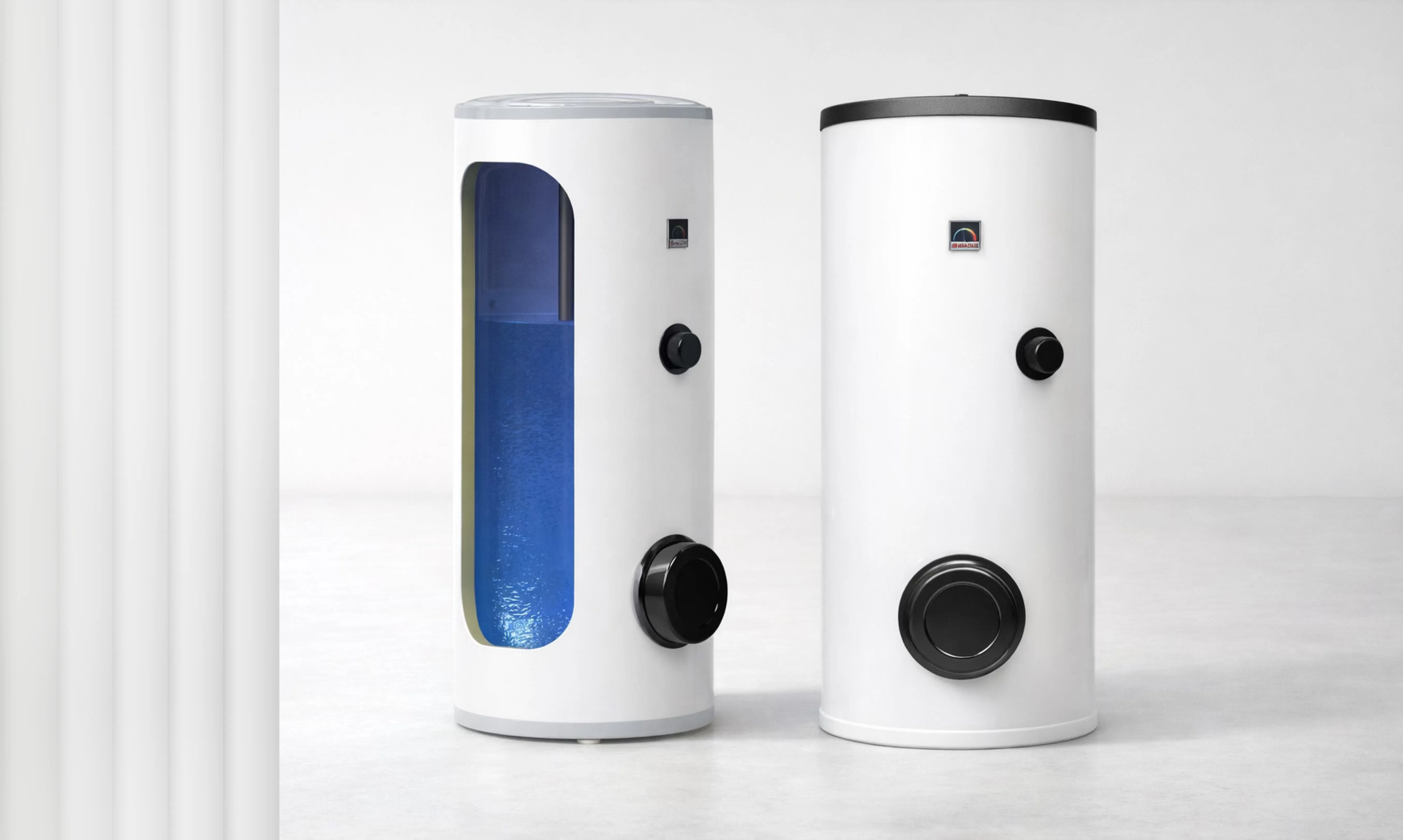 Накопичувальні. Водонагрівачі цього типу заздалегідь підігрівають воду та зберігають її в резервуарі, підтримуючи постійну температуру і дозволяючи одночасно користуватися гарячою водою в кількох точках. Мають більші розміри.